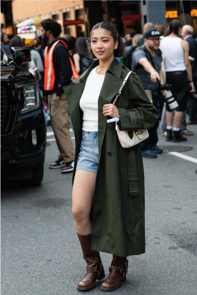 Boots are an autumn essential, and they pair perfectly with shorts. Whether you opt for knee-high boots, ankle boots, or even combat boots, the combination adds a touch of edginess to your outfit. Boots not only provide warmth but also complete the look with a touch of fashion-forward flair.